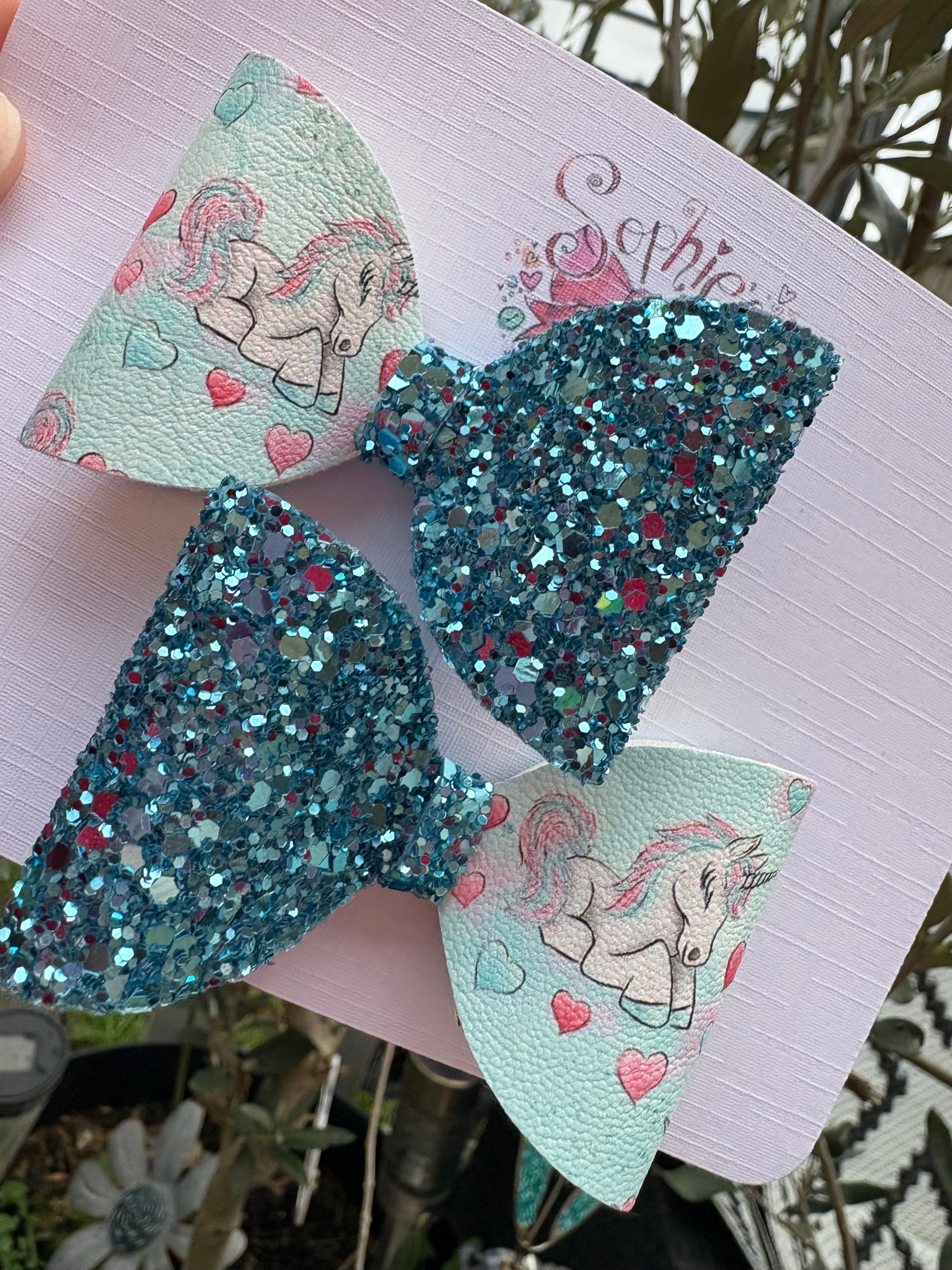 Blue Unicorn Glitter Pigtail Bows 2.5inch