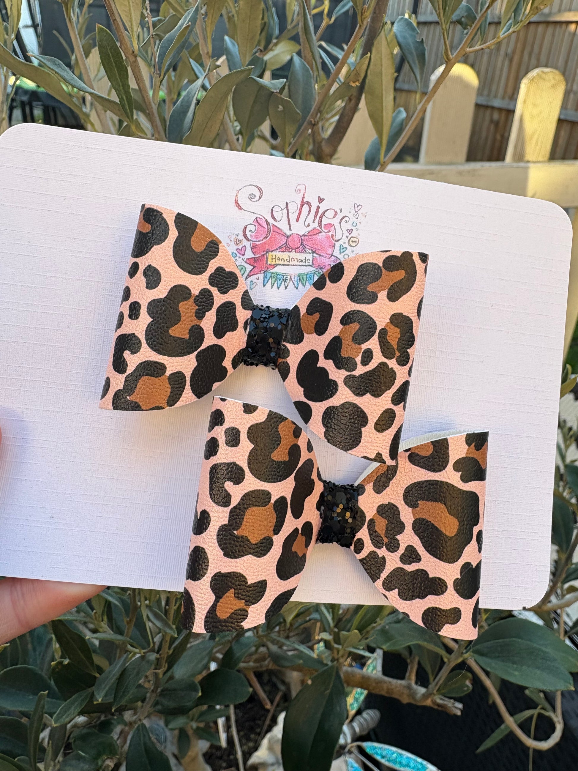 These Light Pink Leopard Print Pigtail Bows are perfect for adding a touch of sophistication and charm to any outfit. Each pack includes two 2.5 inch bows, securely attached to a crocodile clip for easy and hassle-free use. Whether for a special occasion or everyday wear, these bows add a luxurious and exclusive touch. Please note, these bows are not toys and should not be worn while bathing or sleeping.