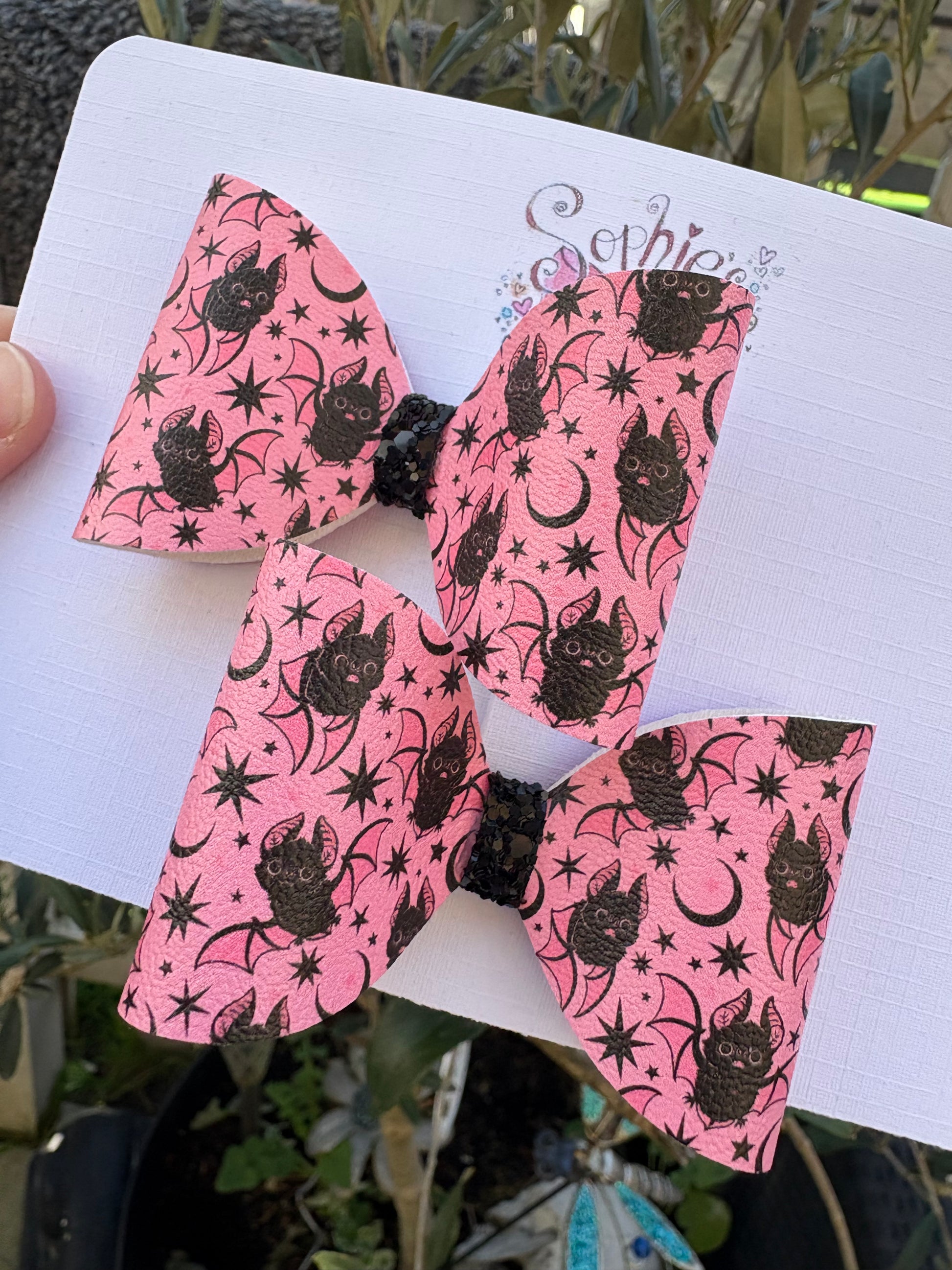 Pink Star Bats 2.5inch Pigtail Bows