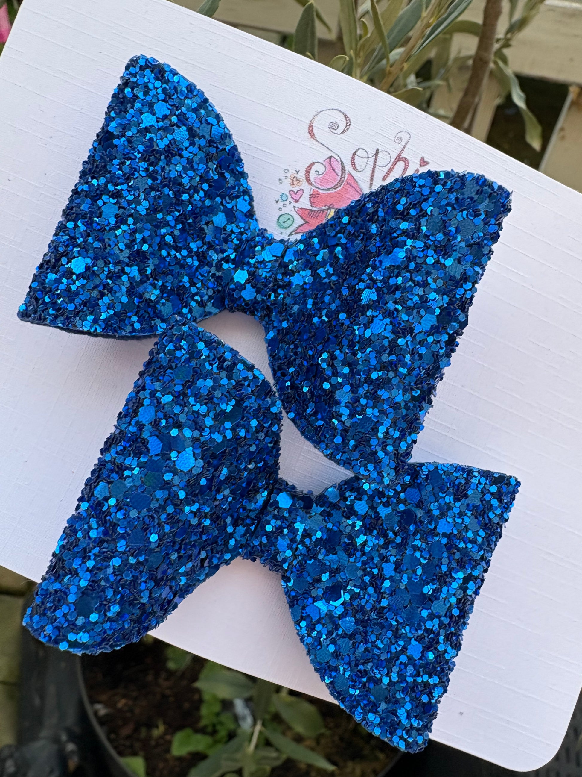 Royal Blue Chunky Glitter 2.5 inch Pigtail Bows